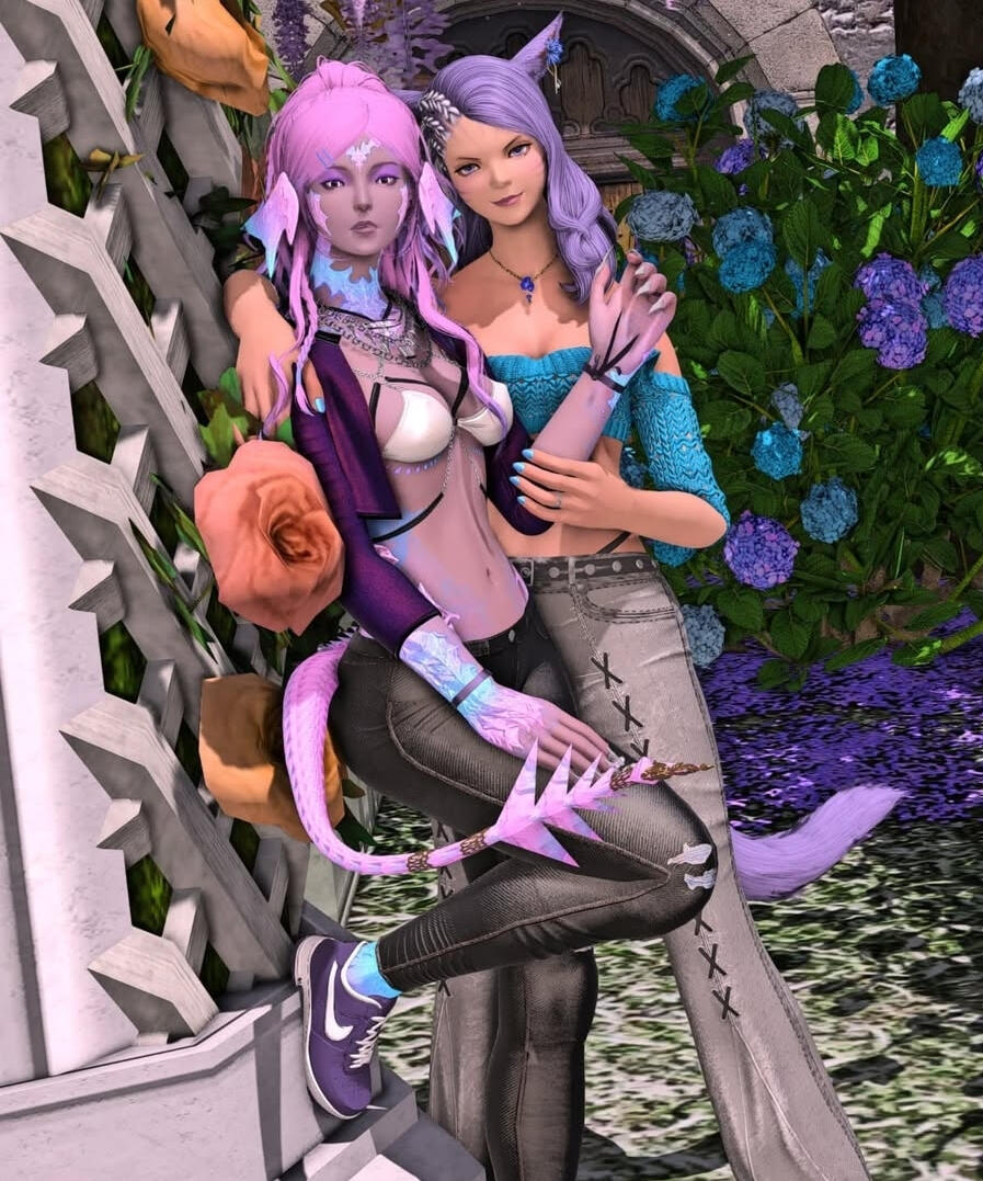 Recently having returned from travels across Eorzea, the oldest of Tsu's younger sisters is seeking to reestablish herself. Wandering the world after escaping the destruction of their village, she was searching for something she couldn't define. Supporting herself in various locales by bartending in the pubs in Adventurerer's Guilds, though she never stayed in one place long. There was something missing, keeping her from feeling like she truly belonged.It's funny how, in the end, where she belonged was where she began, with her family. Tsu, and her other sisters greeted her with open arms, as if she never left. Now, she works as a part time model for Sunrise, and is looking for a permanent place to settle down. Also, she has surprised herself lately, the aggressive loner that she is, by having found herself a partner. She now spends as much of her off time as possible with Lani, as sweet and knowledgeable, bookish girl. Whether on adventures, spending time out on the town, or snuggled up together at home, Cait cannot wait to see what the future holds for them.Stats/Information